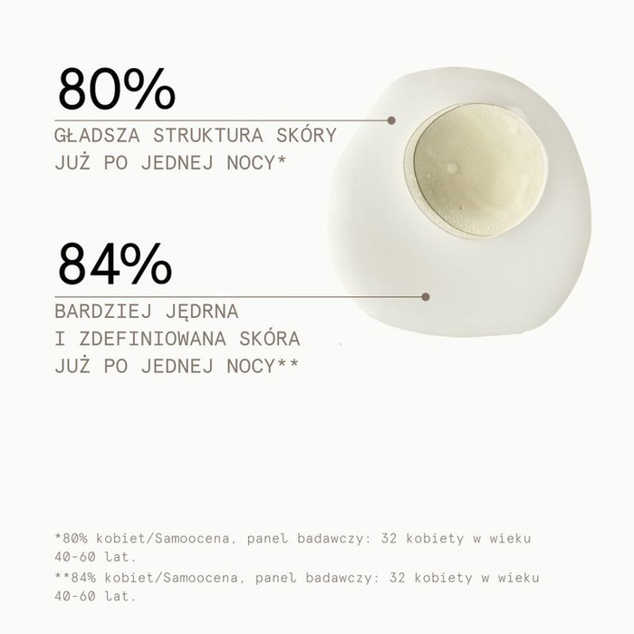 - 94,5% naturalnych składników. Ujędrnienie + zmniejszenie widoczności linii i zmarszczek.