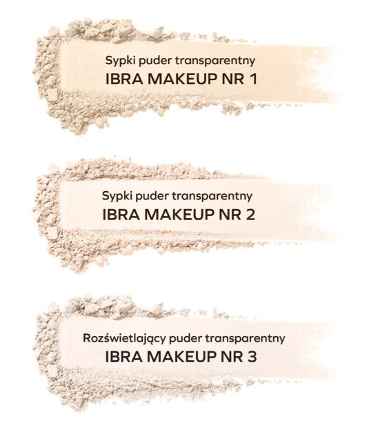 IBRA Makeup prezentuje transparentny, sypki puder idealny dla każdego typu cery w kolorze 2. Kolor nr 2 to odcień naturalnego beżu dedykowany dla jasnych i porcelanowych karnacji. Ultralekki puder transparentny do każdego rodzaju cery. Nadaje świeży wygląd oraz zapobiega świeceniu się skóry. Zapewnia matowy efekt pozostawiając skórę gładką i promienną. Piękny zapach, eleganckie opakowanie i efekty, które widać po nałożeniu niewielkiej ilości to cechy produktu, dzięki którym przypadł on do gustu kobietom na całym świecie. Szukasz pudru, który ujednolici cerę, zmatuje, ale nie będzie zapychał porów. Ibra sypki puder transparentny to propozycja dla każdej z nas. Dzięki lekkiej formule nie daje efektu maski. Delikatnie matuje i łączy ze sobą produkty, przedłużając trwałość makijażu. Jest całkowicie bezpieczny dla każdego typu cery. Wchłania nadmiar sebum, dzięki czemu skóra nie wyświeca się. Ibra puder transparenty to kosmetyk, który warto mieć w swojej kosmetyczce na co dzień. Dzięki niemu szybko i łatwo dokonasz ewentualnych poprawek makijażu w ciągu dnia. Zalety pudru sypkiego IBRA Makeup gwarantuje długotrwały efekt matowego wykończenia makijażu, uniwersalny, transparentny odcień dla każdego typu cery, nie pozostawia plam i smug, ultralekka formuła nie zatyka porów.