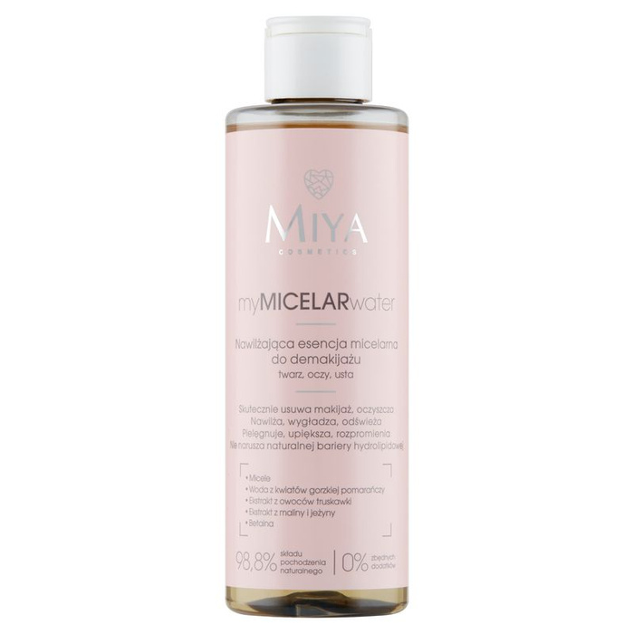 Nawilżająca esencja micelarna do demakijażu myMICELARwater od Miya skutecznie usuwa makijaż i oczyszcza skórę twarzy, jednocześnie wszechstronnie ją pielęgnując.