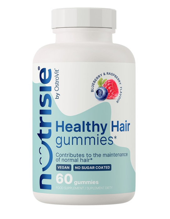 OstroVit NUTRISIE® Healthy Hair Gummies to kompleksowy suplement diety, który dostarcza do organizmu 11 cennych składników, m.in. witaminę D, kwas foliowy i cynk. To preparat dostępny w postaci żelek o pysznym smaku jagody i maliny.