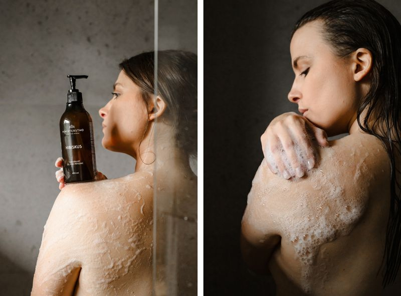 - Naturalny żel pod prysznic z ekstraktem z kwiatów hibiskusa, alantoiną i inuliną (prebiotyk). Doskonale się pieni, łatwo spłukuje i skutecznie oczyszcza skórę.