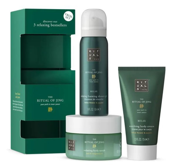 Zestaw próbny Jing to idealny wybór dla osób, które pragną zrelaksować ciało i umysł w rytmie codziennej pielęgnacji. Doskonale sprawdzi się jako prezent lub kompaktowy towarzysz podróży. Wszystkie produkty są odpowiednie dla każdego typu skóry i wyróżniają się naturalnym składem. Kosmetyki Rituals w miniaturze pozwalają poznać najlepsze produkty marki w wygodnych rozmiarach.