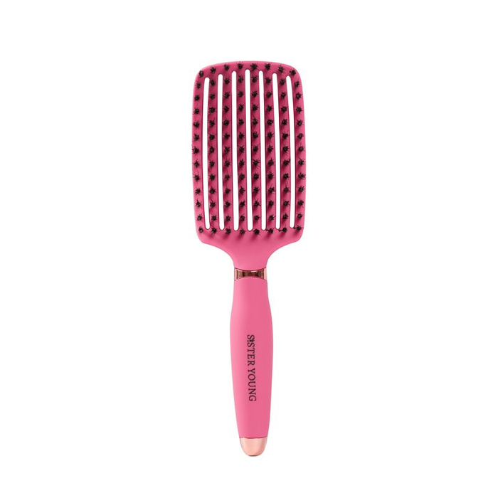 OVIA Sister Young – profesjonalna szczotka z wentylacją, która ułatwia rozczesywanie włosów na mokro i sucho oraz przyspiesza ich suszenie. Naturalne włosie dzika wygładza i nabłyszcza włosy, a nylonowe szpilki z masującymi kulkami delikatnie stymulują skórę głowy, zapewniając maksymalny komfort. Szukasz idealnej szczotki dla swoich włosów? Oto szczotka OVIA - wyjątkowa propozycja dla kobiet, które pragną wspaniałego wyglądu i zdrowych włosów.