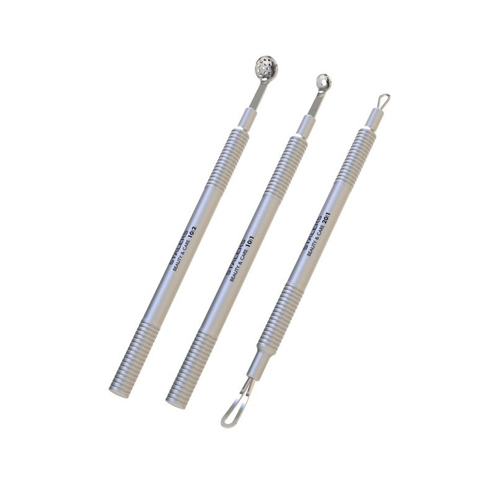 - Zestaw trzech narzędzi do mechanicznego oczyszczania skóry w warunkach domowych.