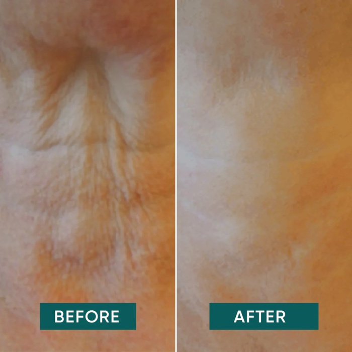 Redukuje zmarszczki: Widocznie wygładza skórę szyi.