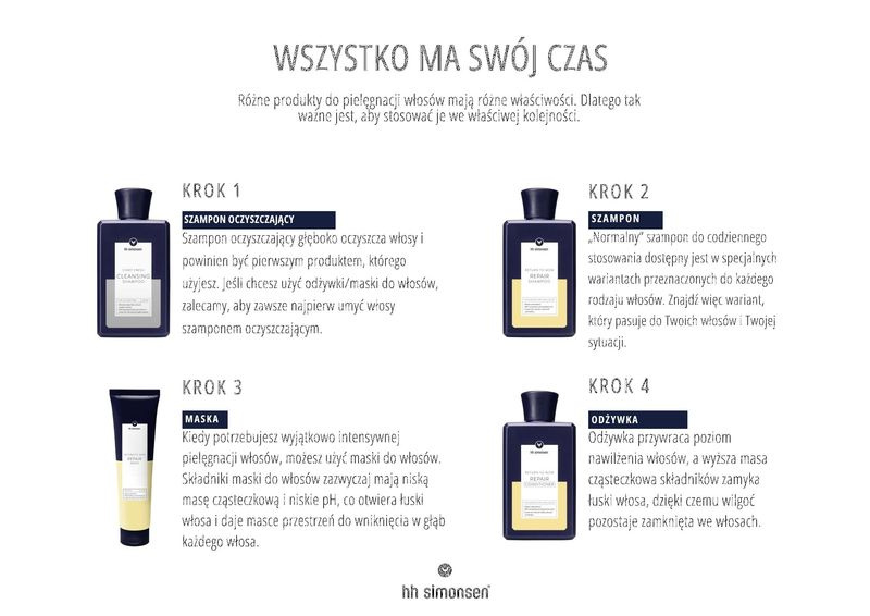 HH Simonsen to marka stworzona przez fryzjerów i stosowana przez profesjonalistów na całym świecie. To właśnie dlatego efekty jej działania można porównać do zabiegu wykonanym w salonie fryzjerskim – ale bez wychodzenia z domu.