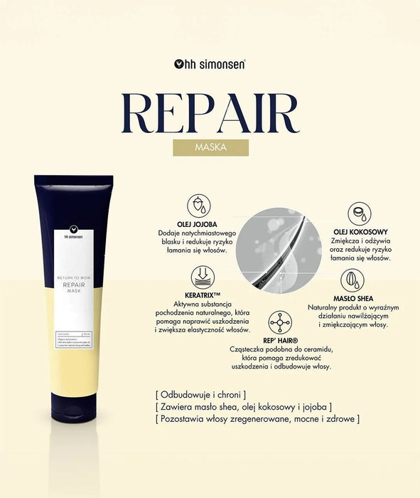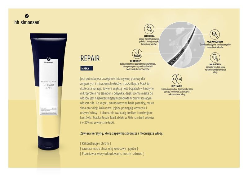 Zadbaj o włosy jak profesjonalista. Sięgnij po HH Simonsen Repair Mask i przywróć swoim włosom zdrowie, siłę i elastyczność – w zaledwie kilka minut.