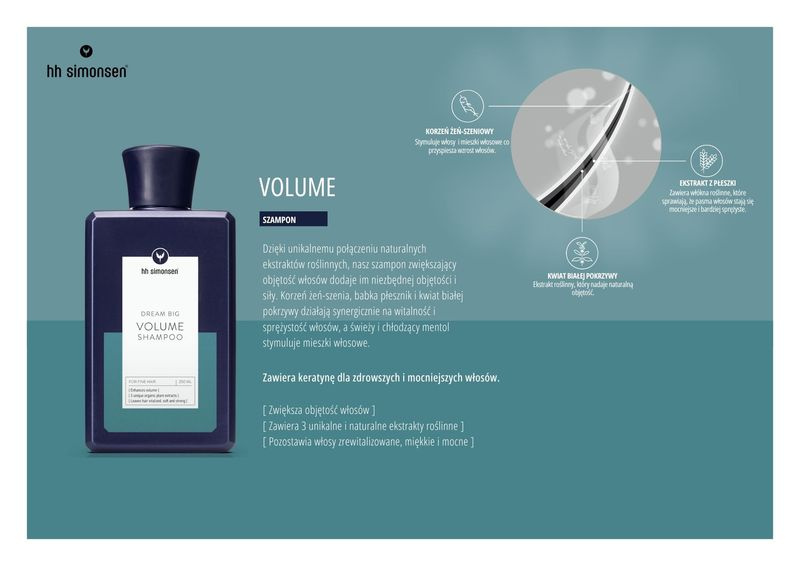 Poczuj różnicę – unieś swoje włosy z Volume Shampoo od HH Simonsen®.