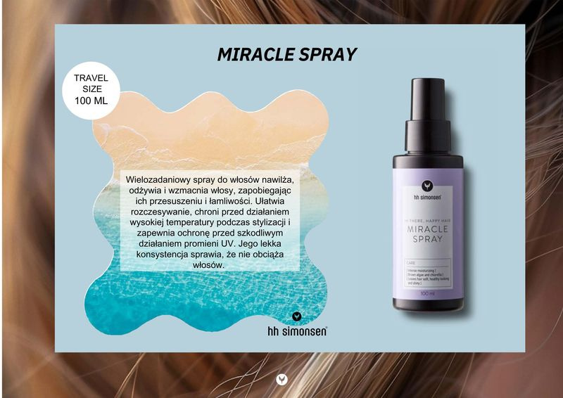 Szukasz lekkiego produktu do stylizacji, który nie tylko ułatwi Ci układanie fryzury, ale też zadba o kondycję włosów? Miracle Spray od HH Simonsen® to idealne rozwiązanie — łączy w sobie moc stylizacji z intensywną pielęgnacją.