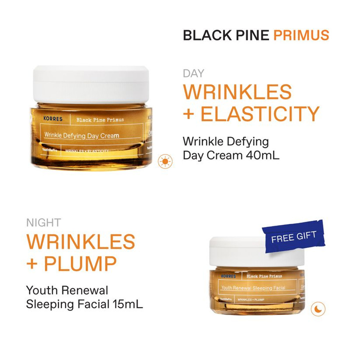 - Poznaj moc natury w podwójnym wydaniu! Zestaw Korres Black Pine Primus łączy krem na dzień i krem na noc, które wspólnie działają, by przywrócić skórze jędrność, elastyczność i promienny wygląd.