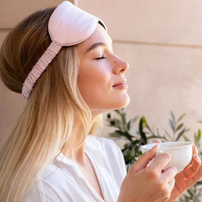 Zacznij pielęgnację już podczas snu! Ta luksusowa opaska na oczy została wykonana w 100% z naturalnego jedwabiu morwowego, który jest naturalnie hipoalergiczny i pozwala skórze oddychać.