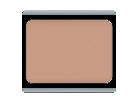 Nałóż krem na twarz. Weź niewielką ilość kamuflażu i wymieszaj na zewnętrznej stronie dłoni. Zwilżoną gąbką rozprowadź cienką warstwą na skórze, staranie wycieniuj na krawędziach.
